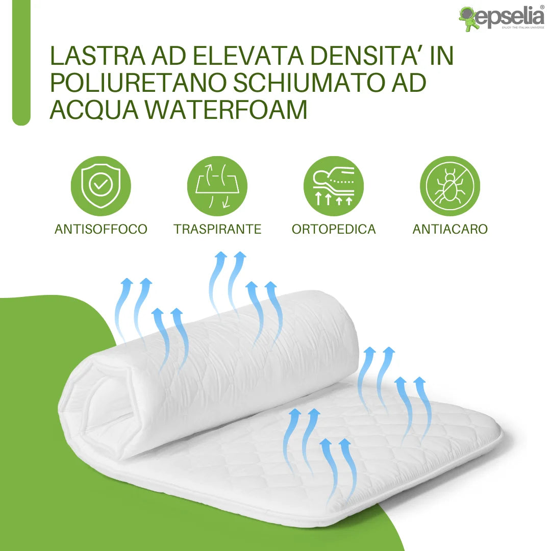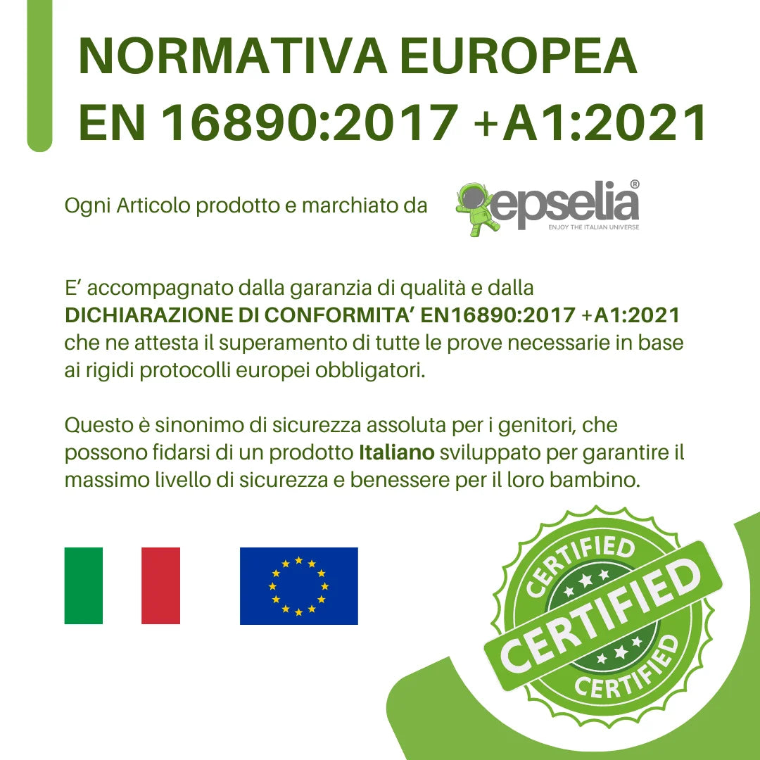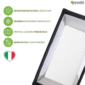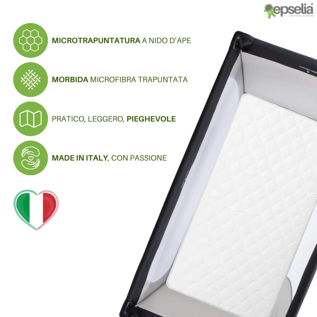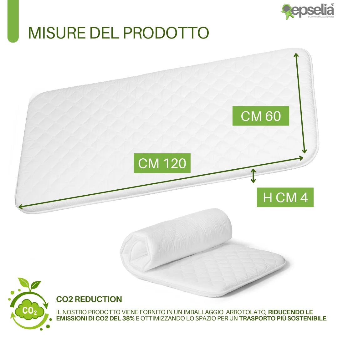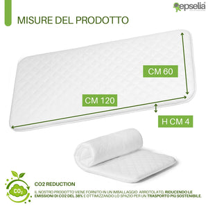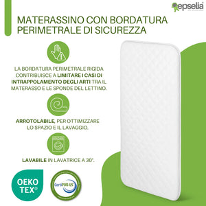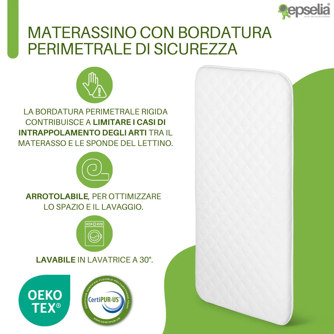 EPSELIA Materasso Lettino per Bambini Arrotolabile e Bordato per Viaggio o Campeggio, cm 60x120 H4 Certificato Antisoffoco EN16890:2017 Poliuretano CertiPUR™ OEKO-TEX®
